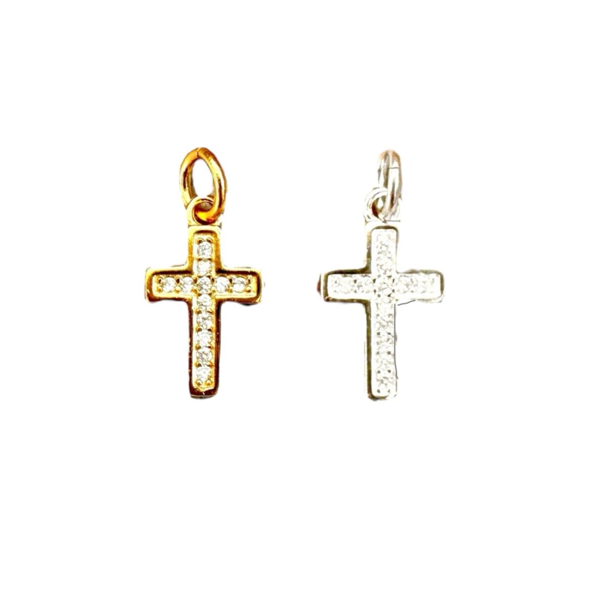 Charm Cruz en plata de primera ley 925 chapada en oro de 18K con circonitas blancas