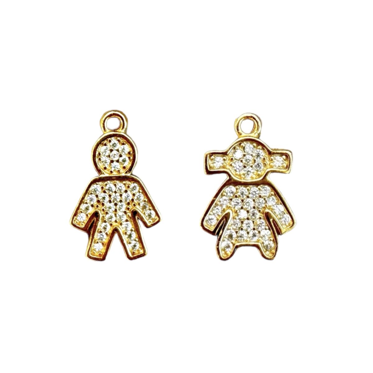 Charm Niño y niña en plata de primera ley chapada en oro de 18k con circonitas