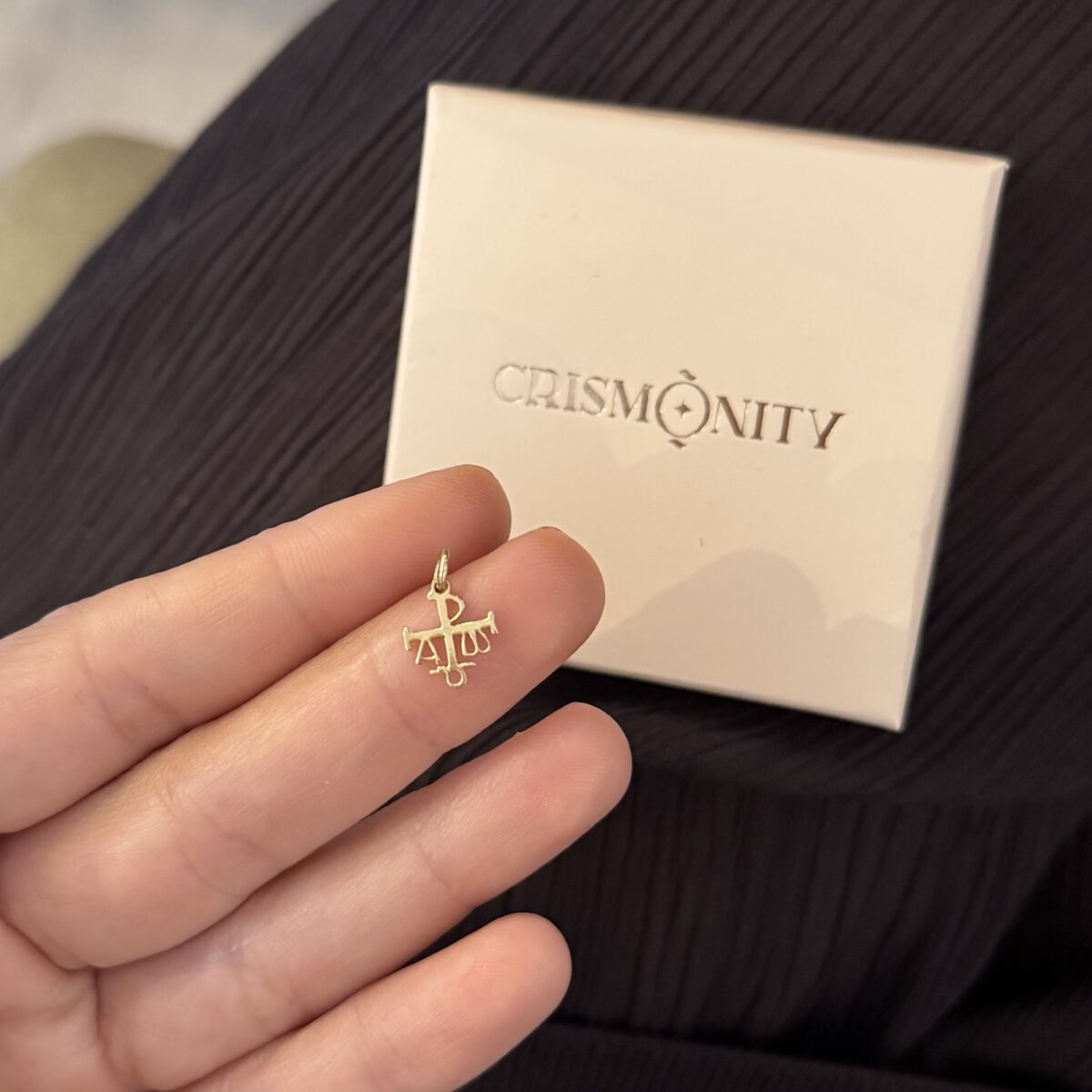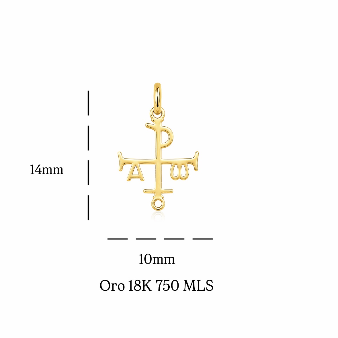 Colgante Crismón Mini ORO 18K esta realizado de manera artesanal con oro de 18K y 750 Milésimas