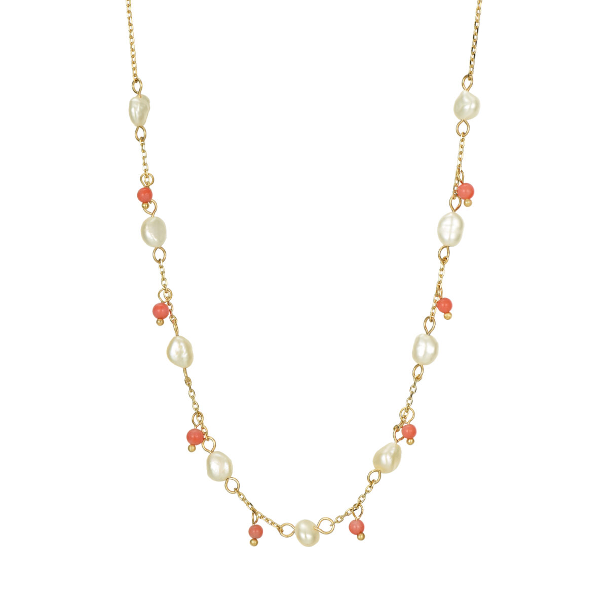 Collar Acero Piedras color Coral y Perlas Cultivadas.
