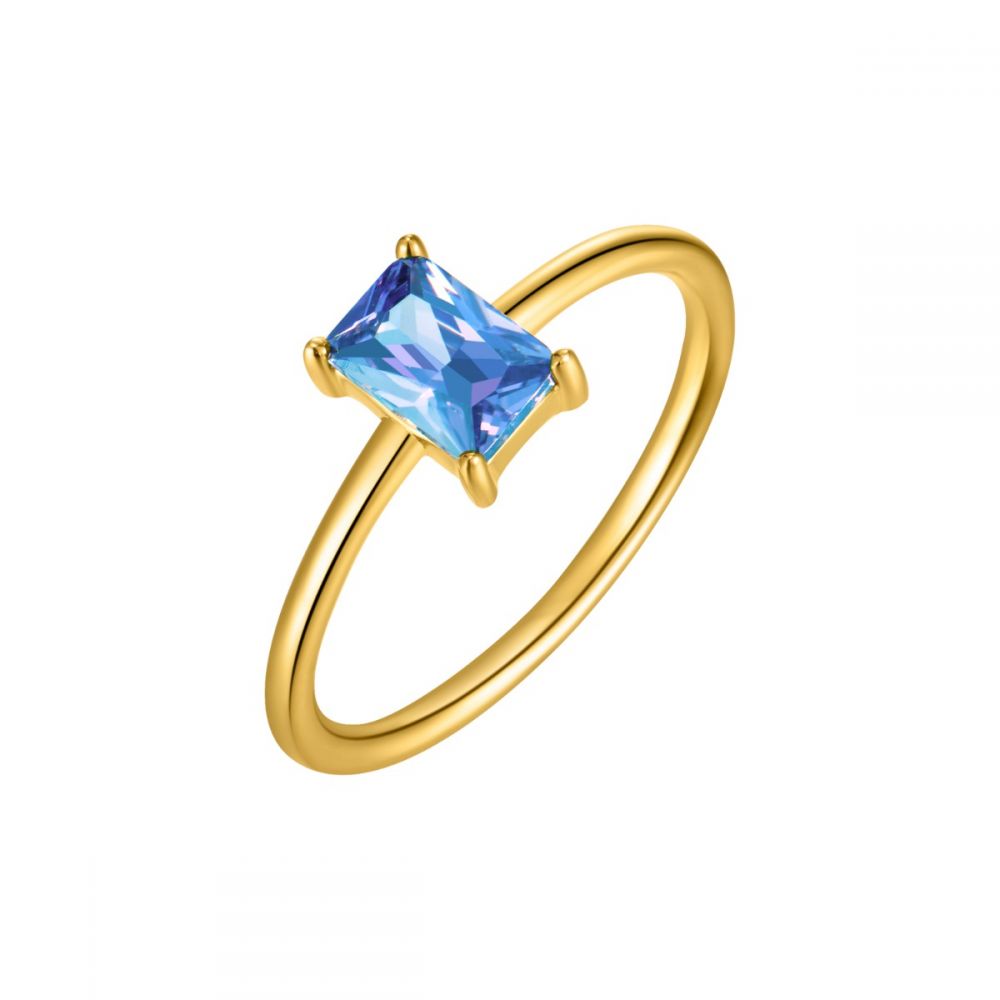 Anillo Sophie Azul Crismonity , con un diseño exclusivo en plata de Primera Ley 925 y plata bañada en oro de 18K. Una pieza fina y elegante montada una circonita tallada tamaño baguette central