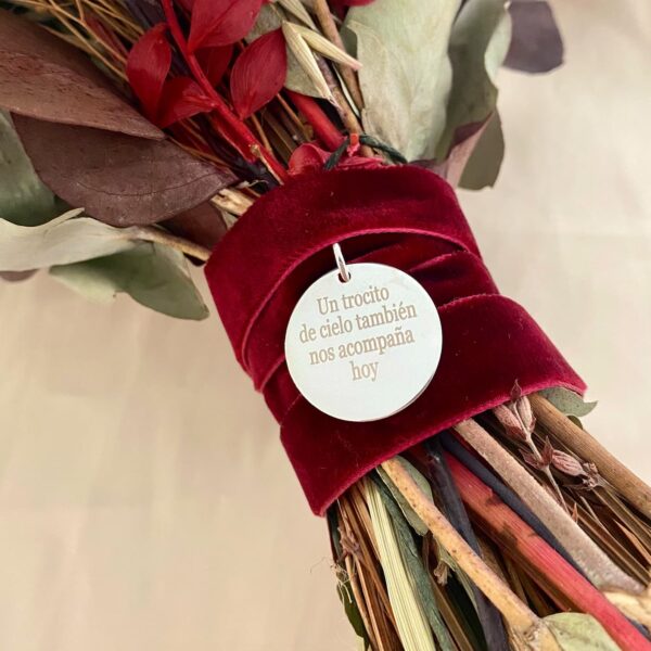 - Cinta de terciopelo incluida ¡elige el color!. Puedes elegir añadir una cadena para que pueda llevarla siempre consigo después de la boda