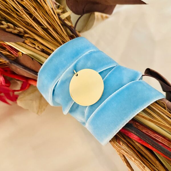 - Elige la cinta de terciopelo del color que más te guste y selecciona si quieres grabarla con texto por la parte de atrás