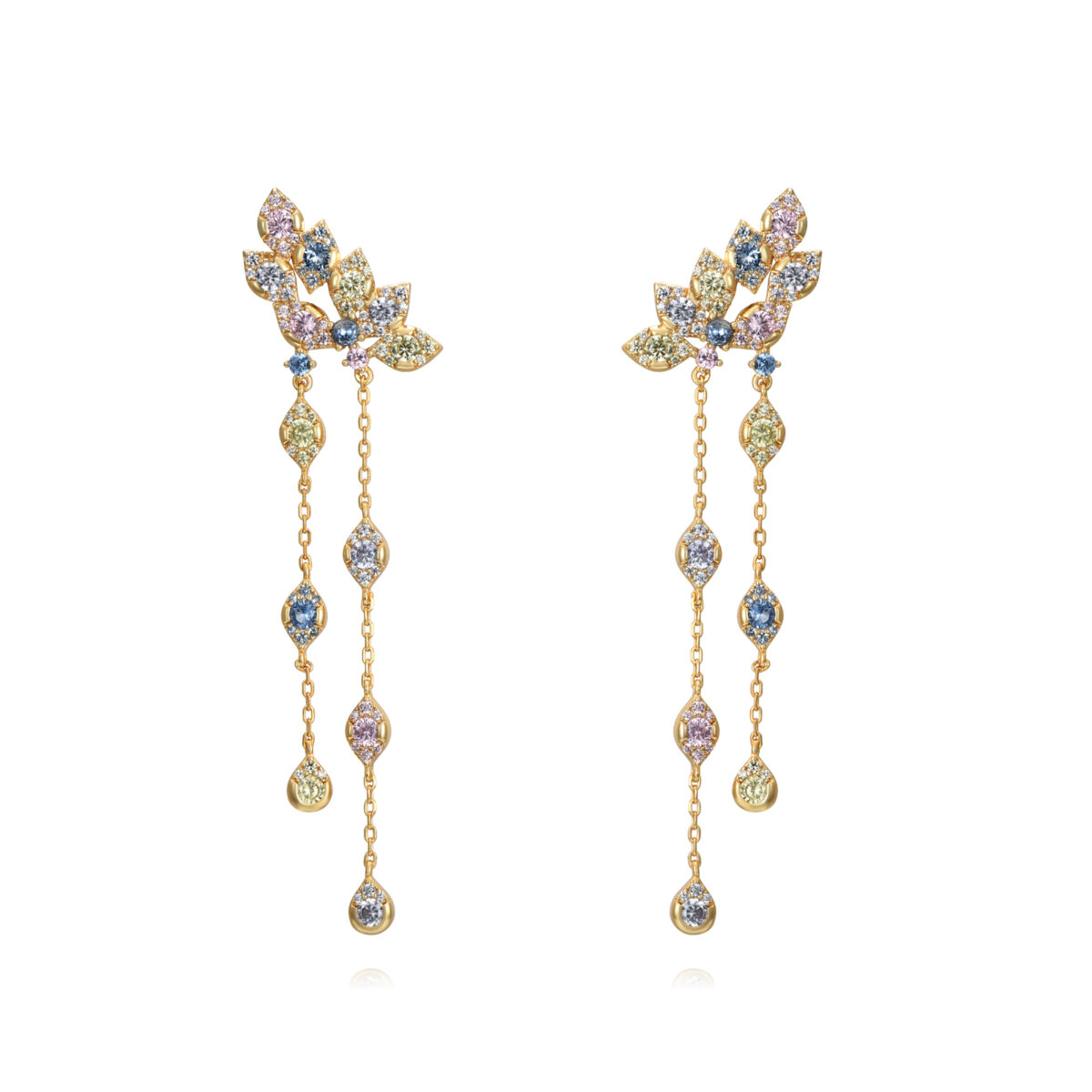 Pendientes Hojas Circonitas Colores Circonitas Crismonity con un diseño exclusivo creado en plata de Primera Ley 925 chapada en oro de 18K e