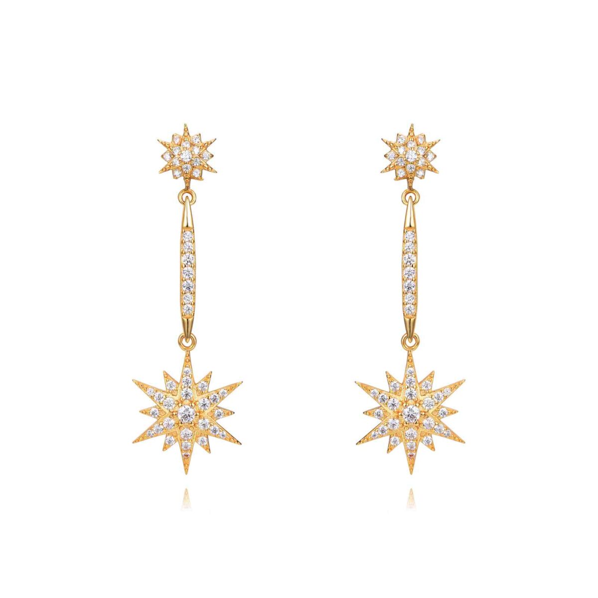 Pendientes Kate Oro Circonitas Crismonity con un diseño exclusivo creado en plata de Primera Ley 925 chapada en oro de 18K e inspirado en los pendientes de oro y diamantes que llevó Kate Middletton en la alfombra roja de Cannes.