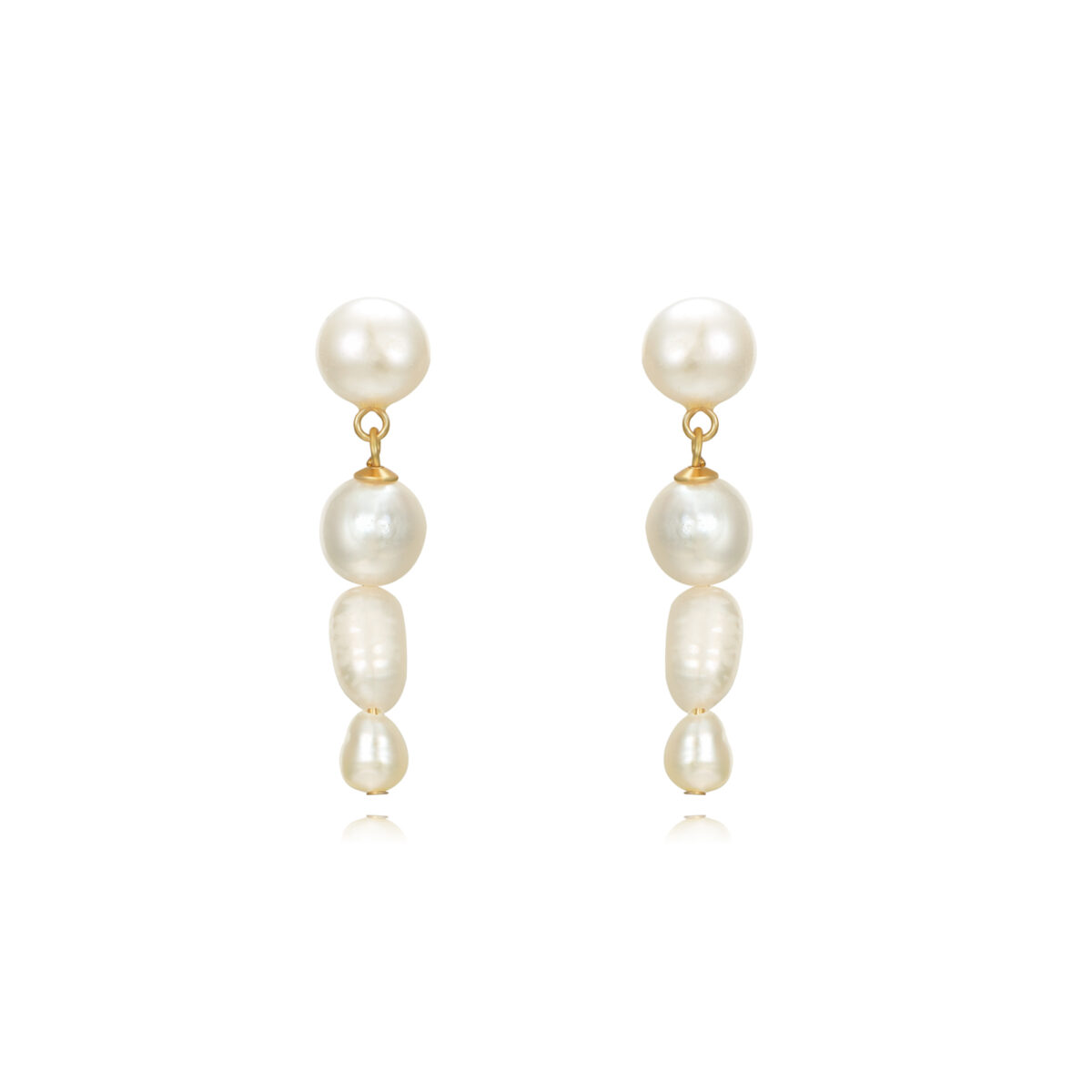 Pendientes Perla Marjorie Crismonity realizados en Plata de Primera Ley 925 chapada en oro 18k con perla cultivada.