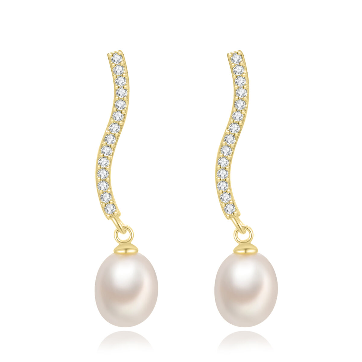 Pendientes Venus Gold Crismonity realizados en Plata de Primera Ley 925 chapada en oro 18k con circonitas  y perla cultivada.