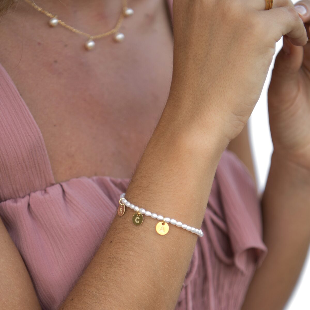 Pulsera Letras especiales Perlas cultivadas Crismonity. Disponible en plata de primera ley 925 y plata chapada en oro de 18 quilates. LLeva a tus personas especiales siempre contigo.