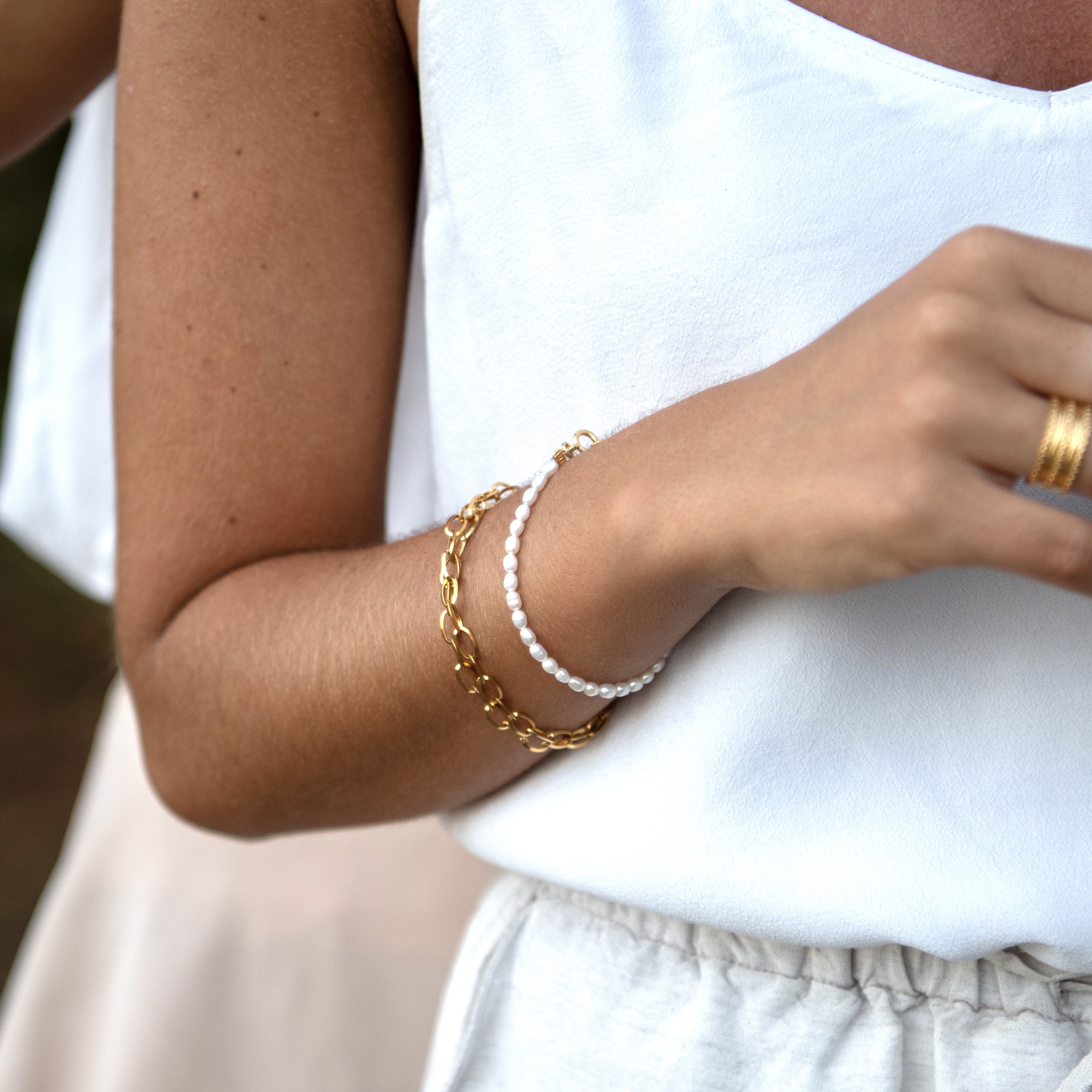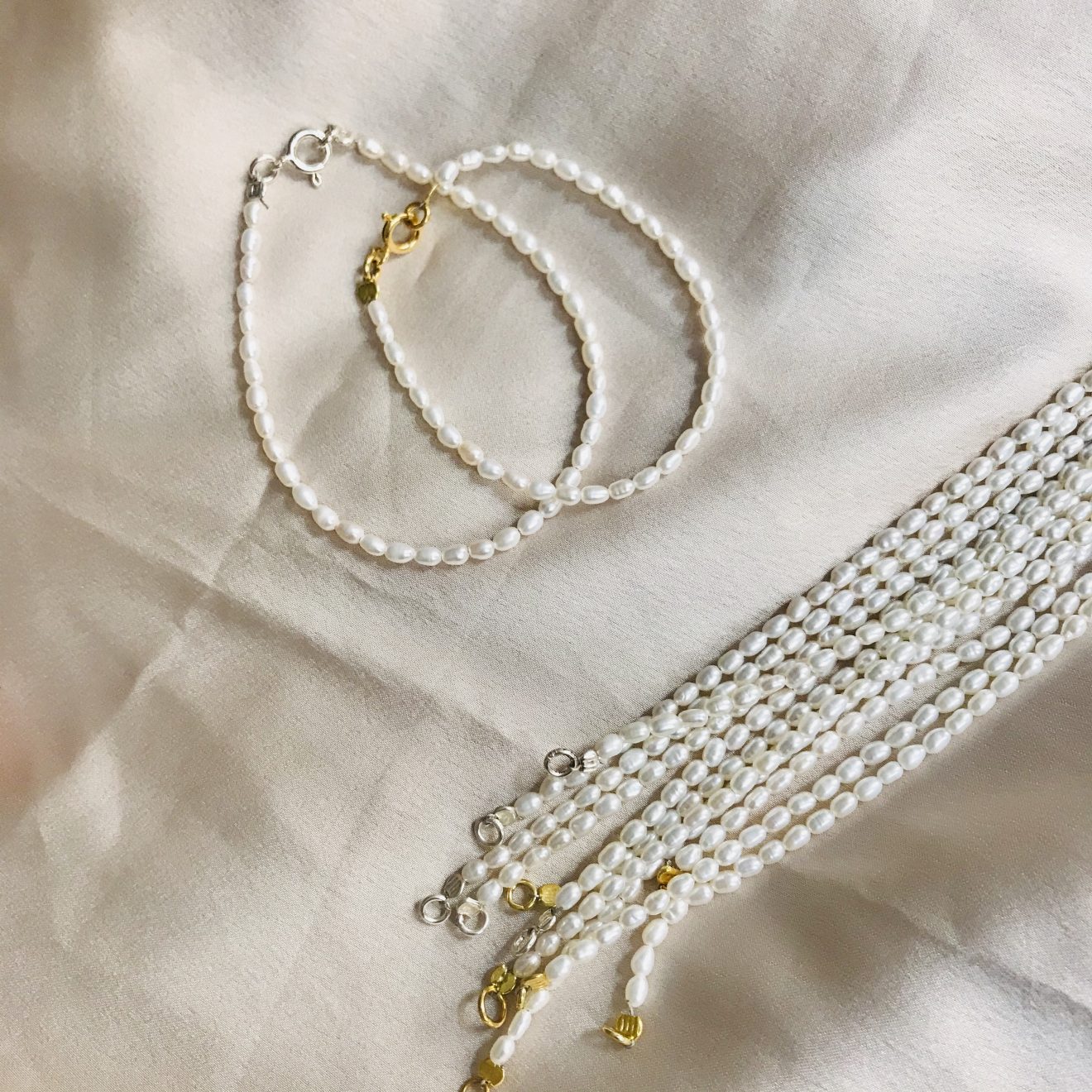 Pulsera Perlas Blancas Cultivadas Crismonity, montadas una a una a mano con cierres en  plata de primera Ley 925 y plata bañadas en oro de 18 quilates.