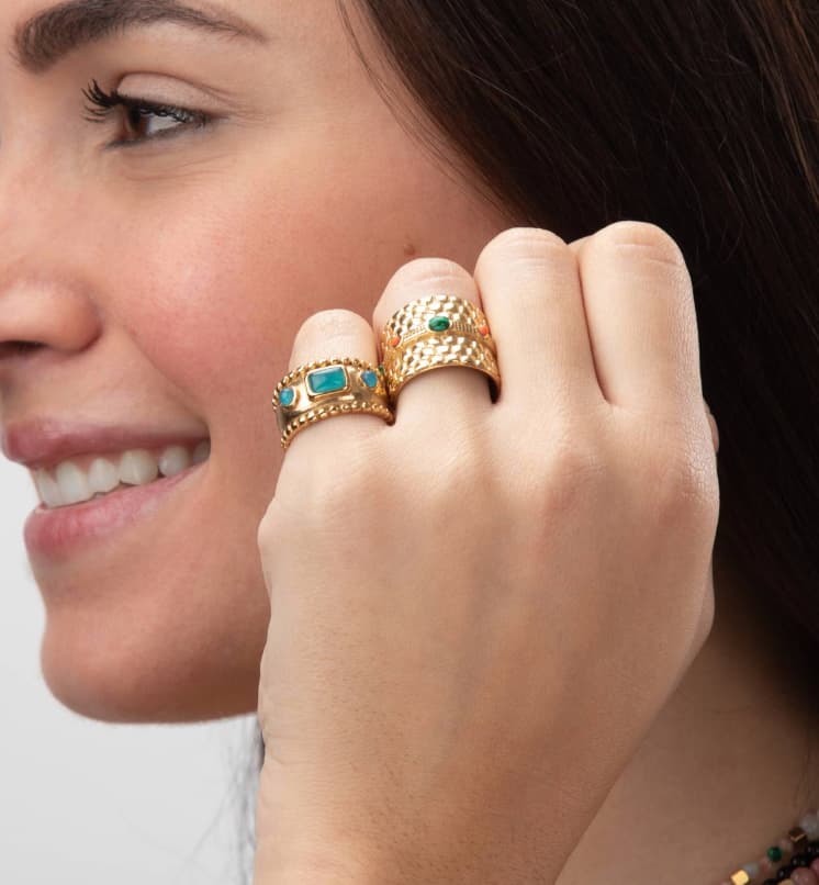 Anillo Mineral Multi Crismonity , con un diseño exclusivo en Acero Quirúrgico Antialérgico con Piedras naturales y labrado. Una pieza divertida y en tendencia con un diseño innovador y único.
