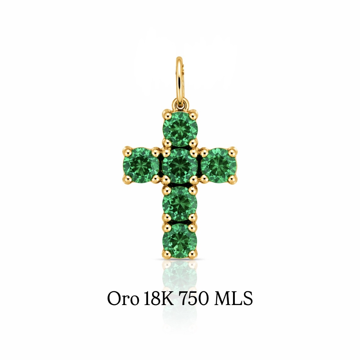 Colgante Cruz mini Esmeralda ORO 18K Edición Limitada