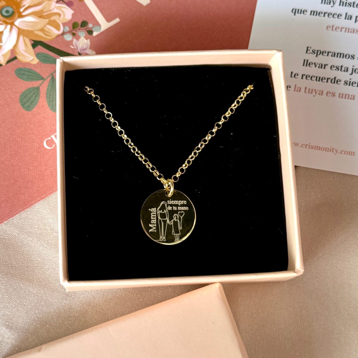 Gargantilla «Mamá siempre de tu mano» Oro. Un recuerdo especial en forma de joya con un mensaje ideal para ella. *Cadena incluida*