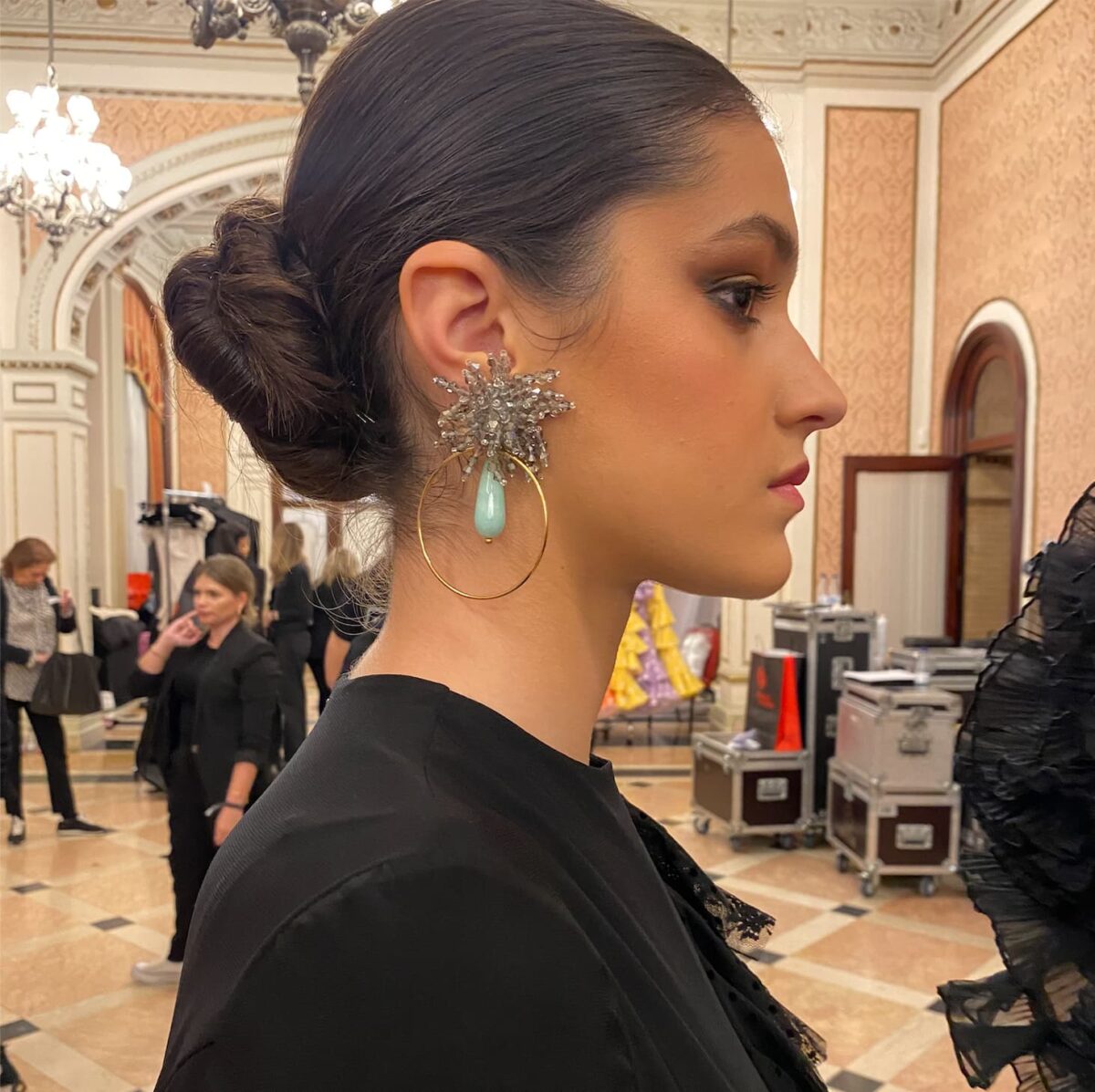 Pendientes Carmen Grises Lágrima Azul. Diseño exclusivo de la Pasarela WE LOVE FLAMENCO 2023.