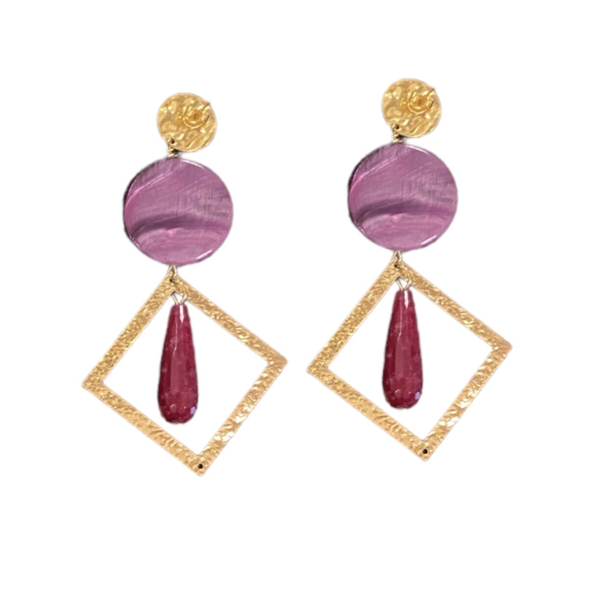 Pendientes Lolita Charonita y lágrima granate. Plata de primera ley 925 chapada en oro de 18K.