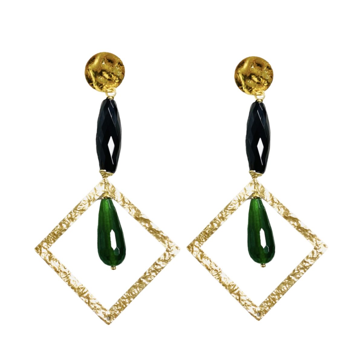 Pendientes Lolita Negros y verdes. Plata de primera ley 925 chapada en oro de 18K.