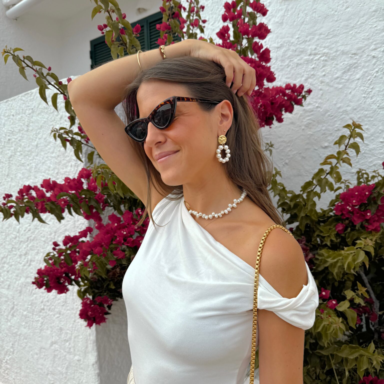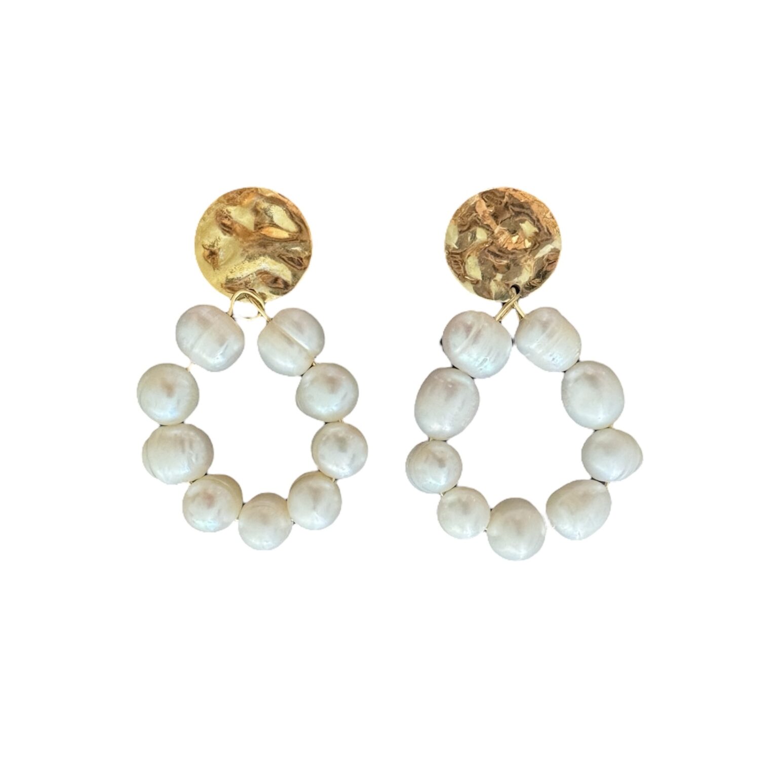 Pendientes Perla Penélope Crismonity realizados en Plata de Primera Ley 925 chapada en oro 18k con perla cultivada.