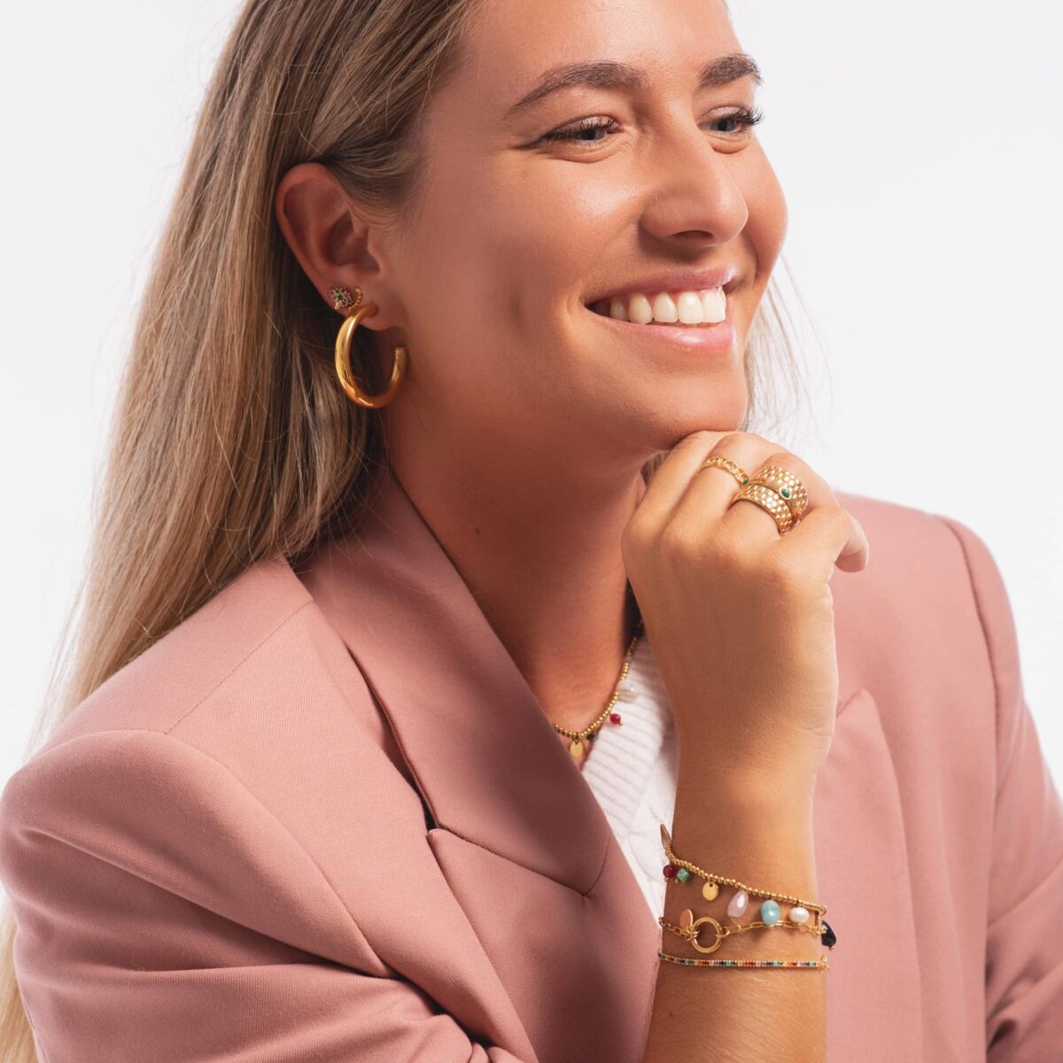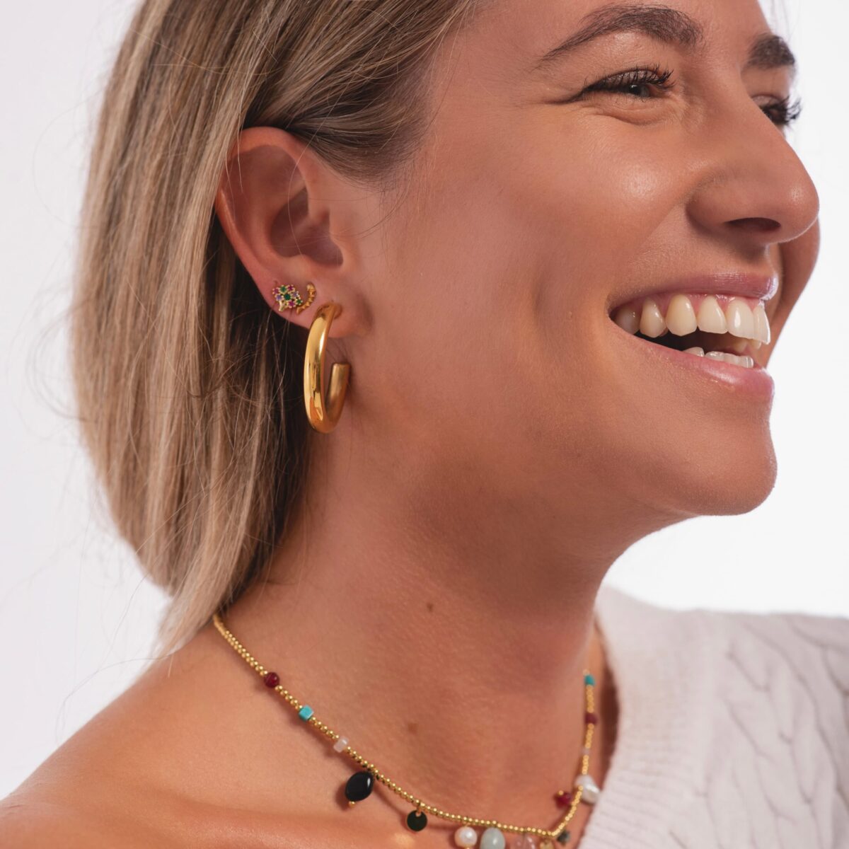 Pendientes Semi Aro. Pendientes en forma de aro con un diseño exclusivo Acero bañado en oro de 18K. Para esta colección hemos elegido un color vibrante para hacer que tus pendientes destaquen en tu día a día. Una elección exclusiva y única.