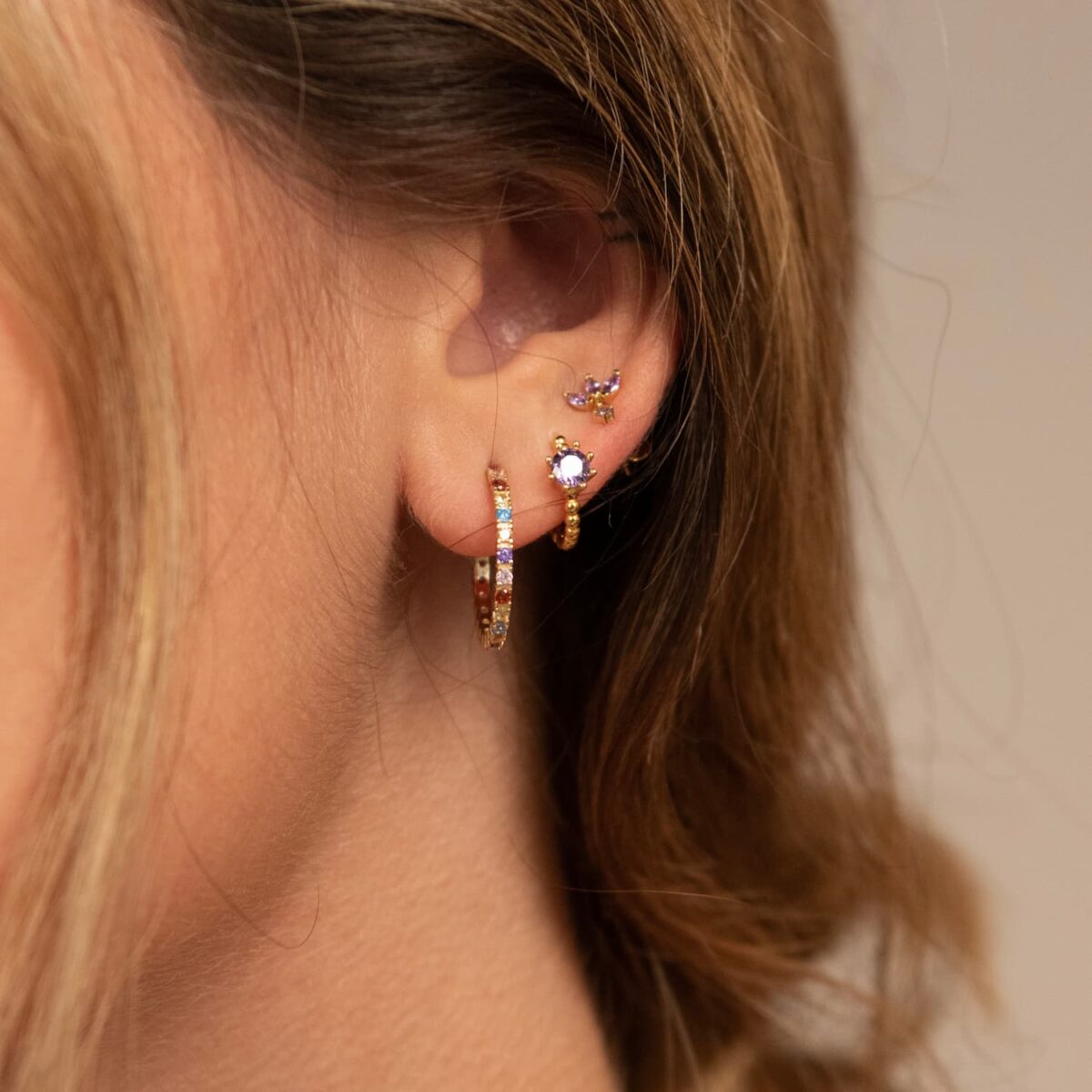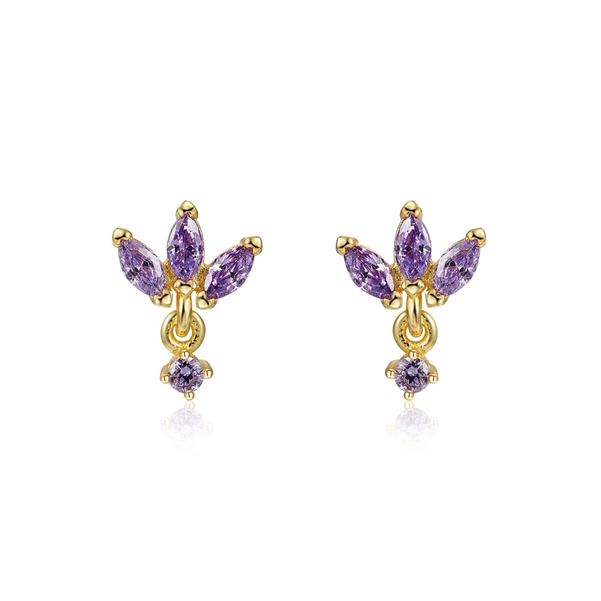 Pendientes Flor Amatista Crismonity, con un diseño exclusivo en plata de Primera Ley 925 y plata chapada en oro 18k con circonitas lilas. Una elección para sentirte especial y única en tu día a día.
